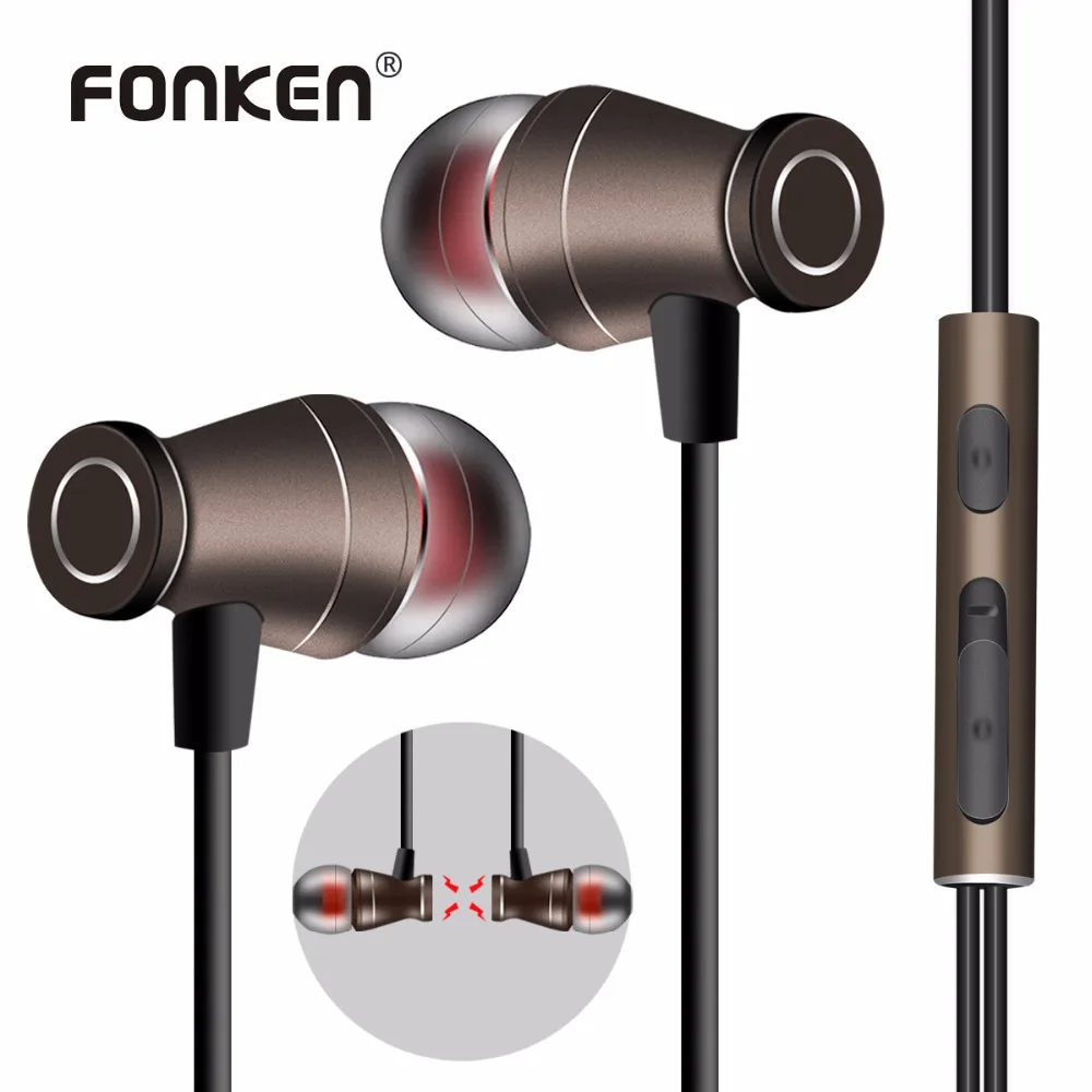 Cheap FONKEN In-Ear Earphone Metal Magnetic Earbuds With Microphone 3.5mm in ear Earpiece Hands-free Volume Control for Mobile phone offers